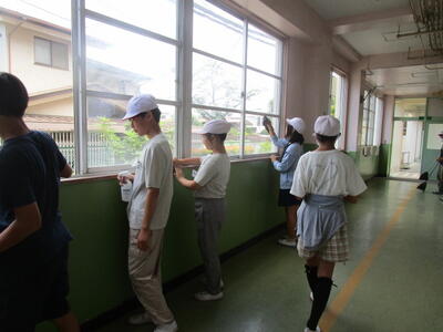 夏休み前の大掃除に取り組みました。普段掃除をしているところはもちろんですが、窓ガラスやげた箱の中、扉のレール
