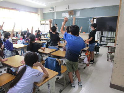 各学級では、夏休み前の生活や学習の話や4月からの振り返り、お楽しみ会などが行われていました。