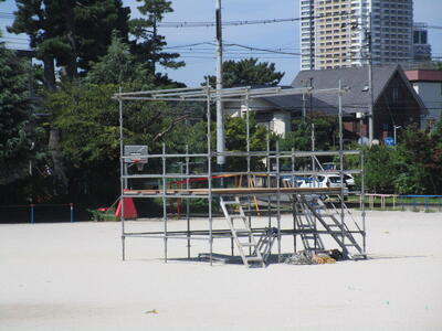 子ども達はとても楽しみにしています。昨日は盆踊りのやぐらがたちました。