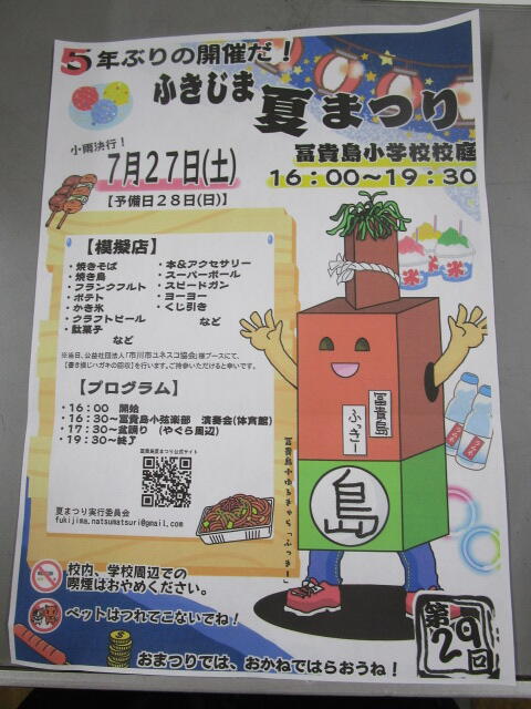 いよいよ5年ぶりにふきじま夏まつりが行われます。
