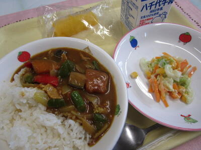 今日は今が旬の夏野菜をたっぷり使ったカレーです。夏野菜は水分が多く、夏バテ予防に効果的です。