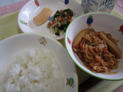 昨日から始まった秋の読書月間に合わせて絵本に出てくる食べ物を給食で作る「おはなし給食」をします。