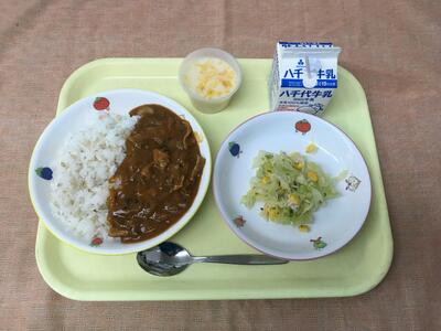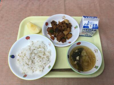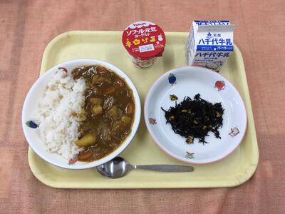 献立:牛乳 ポークカレー ひじき煮 ヨーグルト