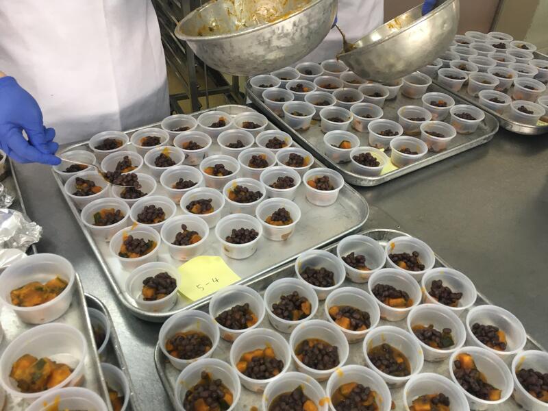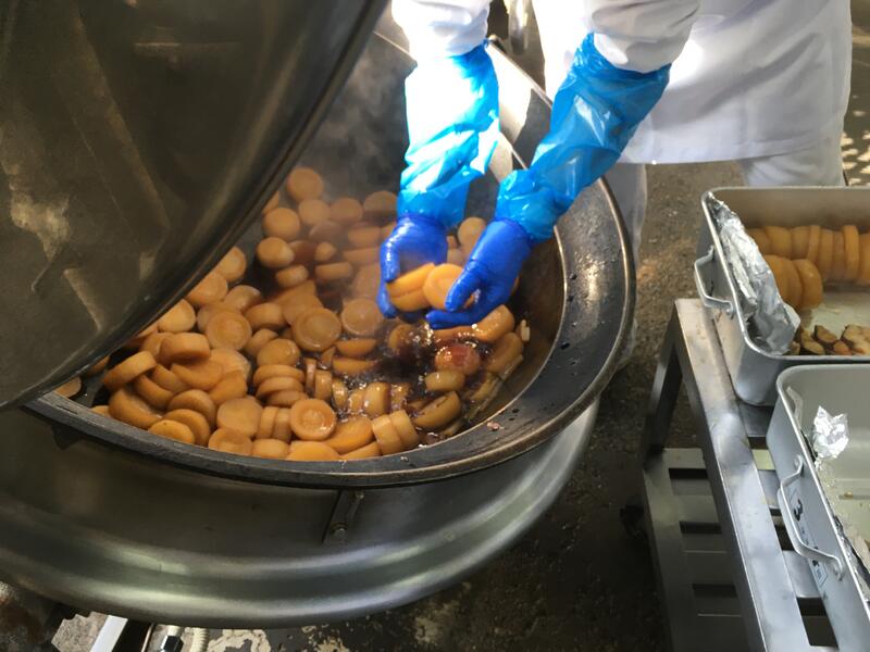 学校給食も同じようなもので、茹でておいた野菜を汁物や炒め物に入れたり、野菜やキノコ類を主菜や副菜に紛れ込ませています。学校給食の献立で、『この料理にこの野菜は普通入らないですよね』という仕上がりになるのもこのためです。