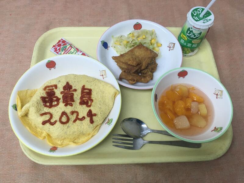 献立:ジョア オムライス フライドチキン コールスローサラダ フルーツポンチ