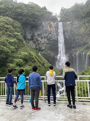 日光修学旅行2日目は、華厳の滝の見学です。エレベーターに乗り、100メートル下まで降リ、雄大な華厳の滝の見学をしました。そのあの日光江戸村でのグループ活動でした。体験したり、劇などを観たり、ミールクーポンで食べたりととても楽しそうでした。