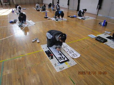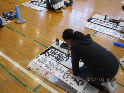 3年生以上は毛筆で書き初めに取り組みます。年末には、学校で練習をし、年始にはお清書をします。