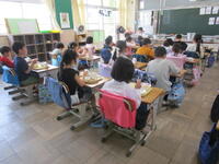 配膳や片付けの仕方の学習をし、給食当番もスタートです。