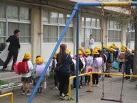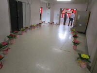 明日は入学式です、110名が入学します。お天気が心配なので傘立てを増やしたり、受付の場所を整えたりして新1年生