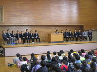 着任式では16名の先生が紹介されました。代表で教頭先生から挨拶がありました。児童代表の歓迎の言葉も素敵でした。