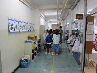 大雨等で川が氾濫したり、校舎内に浸水したりした時を想定して、浸水避難訓練が行われました。