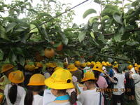 そのあとヤマニ果樹園さんで梨畑の見学と選果の様子を見せていただきました。