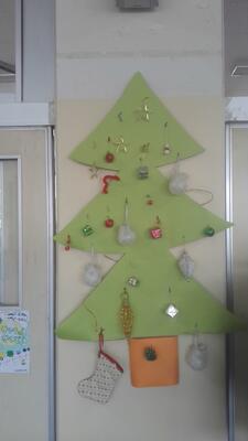 葦の渚学級の廊下の壁には、落ち葉アートの掲示がされていました。秋が終わりを告げ、季節が移っていくのが名残惜しい今日この頃です。