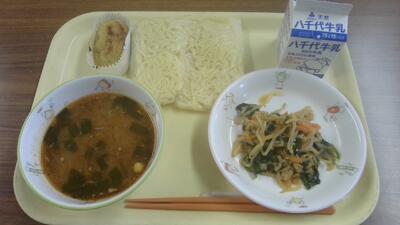今日の給食(みそらーめん、ナムル、スイートポテト)