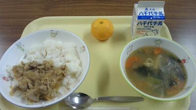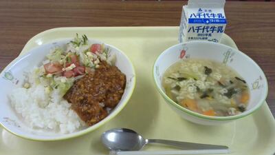 今日の給食(野菜たっぷりタコライス、ABCスープ)