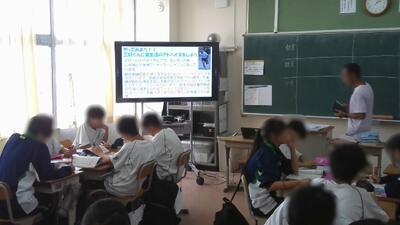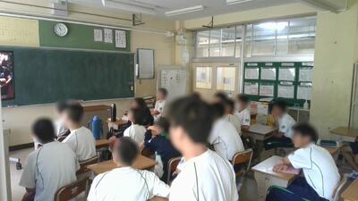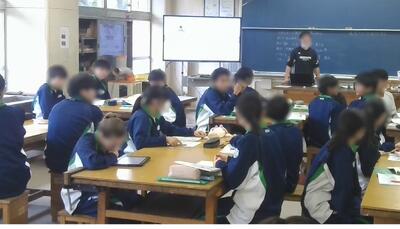 3年生の社会の授業では、アジア太平洋戦争の実態について、人間魚雷「回天」を題材に学習しました。だれもが固唾を吞んで視聴していました。戦後80年、しっかり学んでほしいです。