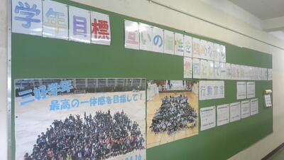 2年生の廊下には、大きく学年目標の掲示物がありました。目標をしっかり意識して、自分自身、そして学年全体の成長を目指しています。