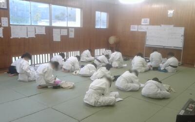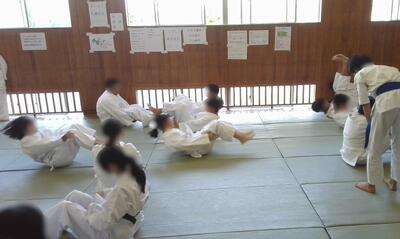 授業も着実に進めています。1年生の体育では、柔道を選択した生徒は「受け身」から「寝技」の学習に移っています。