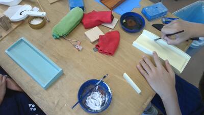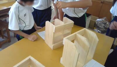 葦の渚学級では、作業教室で木工を行っていました。スマートフォン立ての制作が中心ですが、小物入れも同時に作っていました。こちらも完成間近です。