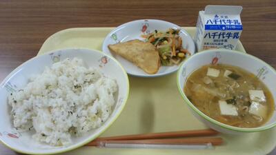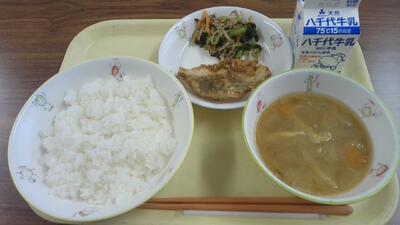 今日の給食(このしろさんが焼き、磯香和え、せいがく餅汁)