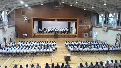 本日から後期スタートです。始業式などはありませんが、さざなみ祭が今週金曜日に迫り、学校は歌声があふれ出しています。 今日は、学年ごとの公開リハーサルを行いました。参観された保護者の皆様、ありがとうございました。生徒たちは残りの時間でさらに上達し、成長していきます。ご支援ご協力をお願いいたします。