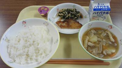 今日の給食(鮭の香味みそ焼き、ひじきの梅煮、のっぺい汁)