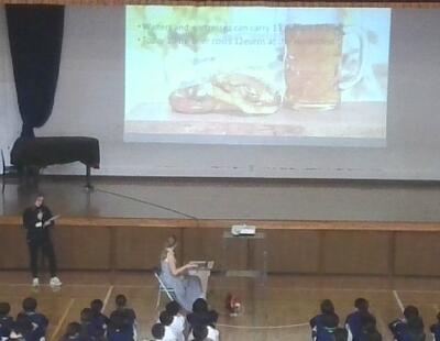 2年生の英語は、長文を読み込んで、文の概要を近くのクラスメイトと相談しながら伝える授業を行っていました。中学2年生の英語は結構難しそうです。