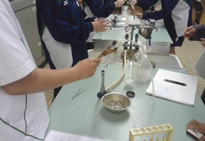 1年生の理科は「溶解」の実験を行っていました。ビーカーとガラス棒を使って溶質を溶かし、ろ過し、数日置いてからまた観察をする授業でした。どうなっているか楽しみです。