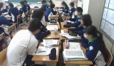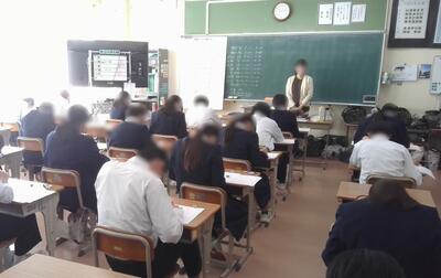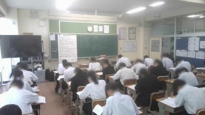 本日、定期試験1日目でした。生徒は真剣に机に向かい合い、受験していました。もう1日頑張ってください。