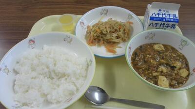 今日の給食(マーボー豆腐、ちくわのコロコロサラダ)