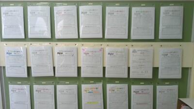 先日に引き続き、掲示物の紹介です。校舎の1階には職員室をはじめ、様々な部屋が配置されています。それらの部屋の廊下側の掲示物を紹介します。