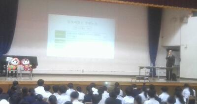今日の6校時に、弁護士、千葉地方法務局市川支局、人権擁護委員の方々による人権講演会が行われました。ステージ上には人権イメージキャラクター「人KENまもる君」「人KENあゆみちゃん」が見守る中、感染対策のため1,3年生はオンラインで、2年生は体育館で講演を聞きました。機材の不調のため、オンラインの音声が止まることが多い中、「リスペクト・アザース」(他の人のことを尊重しよう)の動画を見た後、弁護士の先生から「人権について」「いじめについて」の法的な解釈や判例などの説明がありました。これを機会に、あらためて一人一人の「人権」について考えていきましょう。
