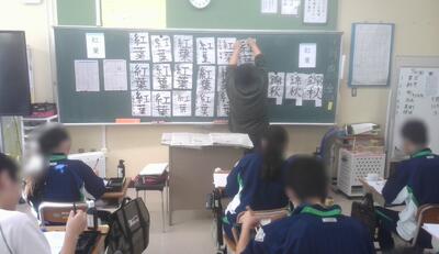 2年生の美術では、篆刻の授業が行われていました。自分の名前の漢字を篆書体を用いてデザインし、尖った金属で文字を掘っていました。完成したら、いろいろな場面で使えそうです。
