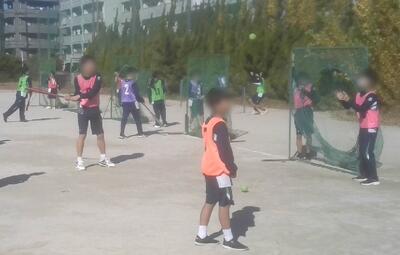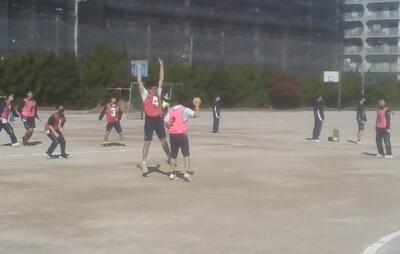 3年生は、校庭や体育館でハンドボールやソフトボール、バスケットボールの種目に分かれて基本練習や試合形式の授業を行っていました。