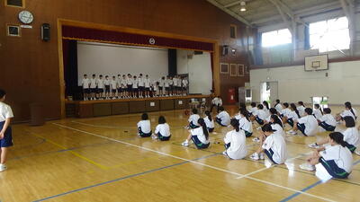 1年生が4時間目、体育館で入退場練習をして動きを確認していました。他の学年も来週の本番に向け、少しずつ合唱が仕上がって来ています。1年生がんばれ
