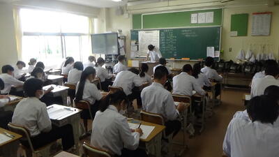 9月9日(月)に教員の授業力向上に向けて校内授業研究を行います。本日は理科の教員が講師の先生に来ていただき、指導案検討会を行っています。全ての教科で検討会を夏休み中に行い、当日を迎えます。