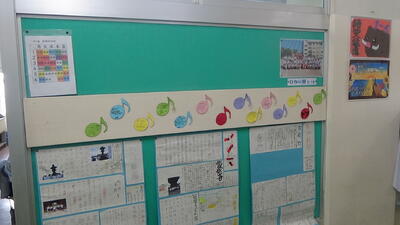 各教室の前に生徒それぞれの思いを書いて貼りだしています。2つ内容を紹介します。「音楽という愛をきざもう」「誰かの心を震わせたい」
