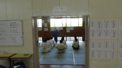 体育館では剣道部が他校を招いて練習試合を行っていました。生徒たちが審判ができるようになってきました。