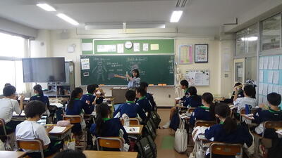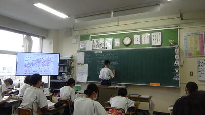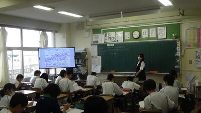 生物の分類について学んでいました。先生が生徒たちからカメムシなど身近な生物の名前を引き出しながら、進めていました。