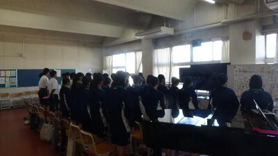 合唱祭にむけて音楽室で「君をのせて」を練習していました。回を重ねるごとに上手になっています。