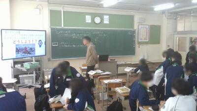 3年生の英語は、大型提示装置の映像を見ながら、入試対策の英作文の問題にALTの支援を受けながらチャレンジしていました。都内私立入試も始まります。公立入試も迫ってきましたが、焦らず、体調管理をしっかりとして本番を迎えましょう。