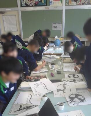 2年生の美術は、水墨画です。提出する日が近づいてきており、色紙への本描きを始めている生徒もいました。数か月の成果をしっかりと筆で表しましょう。