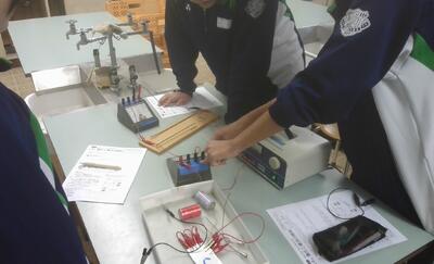 今日の2年生の理科は、「抵抗器に加える電圧を変化させたとき、抵抗器に流れる電流の大きさを測定し、電圧と電流を調べる」実験を行っていました。接続の少しのずれでなかなか正確な数値が出ず、手こずっていました。
