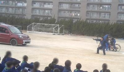今日の5校時に、市川市の交通計画課の職員や行徳警察署員、そして(株)ワーサルの講師の方々が来校し、スケアードストレイト交通安全教室を実施しました。スタントマンが実際に自動車とぶつかるなどのシーンを実際に見ることは大変ショッキングなものですが、目的は「命を守る」そして「ルールを守る」ことが「自分と周りの人を守る」ということを心と体で理解してもらうためのものです。ただ見るだけで終わらせず、ぜひこれからの生活に活かしてほしいです。