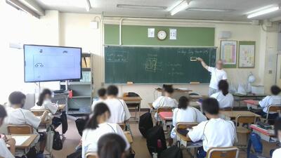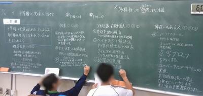 3年生の数学では、「三平方の定理の逆について理解しよう」を学習目標に大型提示装置を使いながら学習していました。さすがに中学3年生は難しい内容です。