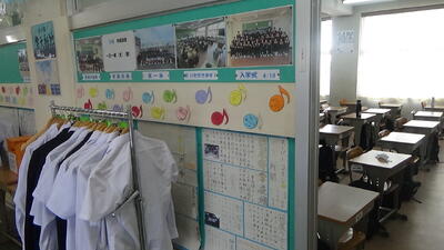 各教室の前に生徒それぞれの思いを書いて貼りだしています。2つ内容を紹介します。「音楽という愛をきざもう」「誰かの心を震わせたい」