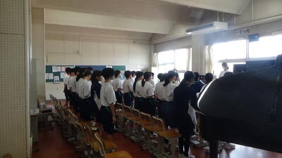 合唱祭にむけて音楽室で「君をのせて」を練習していました。回を重ねるごとに上手になっています。