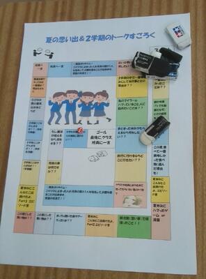 2年生は独自のすごろくで、これからの目標や夏の思い出を班内で発表していました。