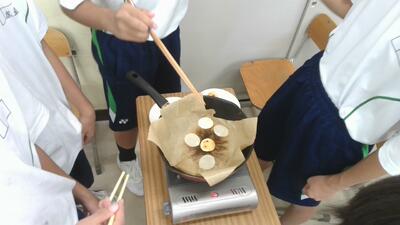 葦渚学級では調理実習の一環として、お煎餅を小グループに分かれて焼きました。