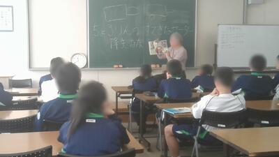今日の葦の渚学級の4校時は、学習センターで読み聞かせを行っていました。学校司書が絵本を使って感情をこめて読み聞かせていました。